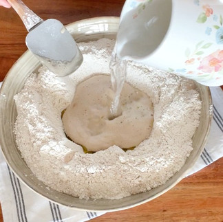 Cheia acestei rețete este un aluat foarte hidratat, fără frământare. În lipsa frământarii, această rețetă produce un aluat moale, lipicios, care necesită doar câțiva pași pentru a crește. Amestecați ingredientele pentru aluat într-un castron până când sunt combinate, acoperiți-l și lăsați timpul să se ocupe de restul.