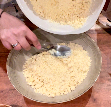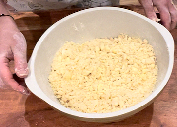 ✔ Folosind o furculiță sau vârfurile degetelor, frământă ușor până obții o textură asemănătoare firimiturilor.