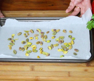 Dressing-ul preparat din ulei de măsline, suc de lămâie și melasă de rodii, completează perfect aroma acestei salate. In final, textura sa este ridicata la un alt nivel prin aroma bogată si crocanta a toppingului cu fistic prajit.